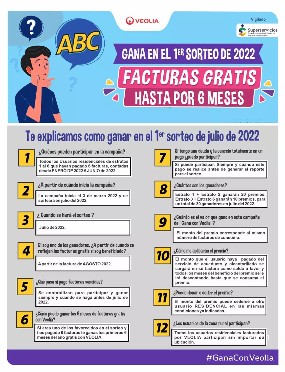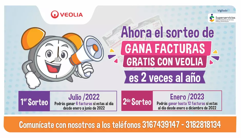 En Veolia seguimos premiando a nuestros usuarios, creando conciencia del buen uso de los servicios, la responsabilidad de pagarlos y de proteger el medio ambiente. En este 2022, nuestra campaña GANA FACTURAS GRATIS CON VEOLIA, es dos veces al año. Ya son más de 50 millones de pesos entregados a usuarios desde que inició el programa y más de 70 los ganadores.