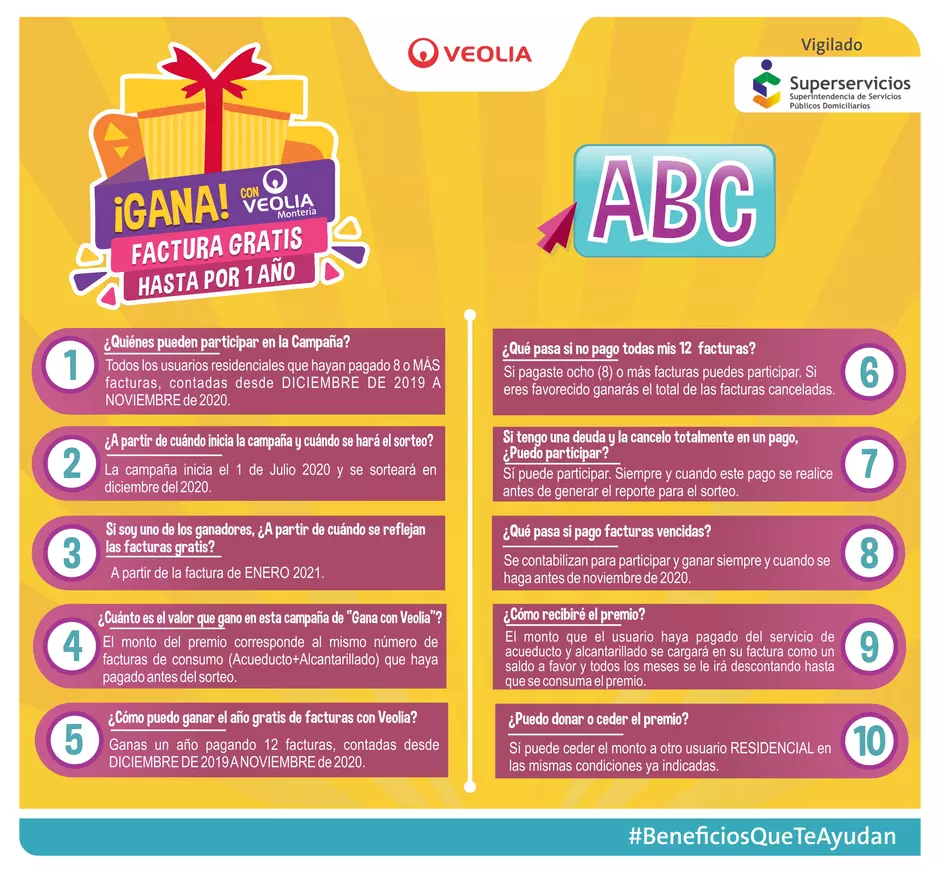 A esta iniciativa podrán participar todos nuestros clientes Veolia que hayan pagado 8 o más facturas desde DICIEMBRE DE 2019 A NOVIEMBRE de 2020,